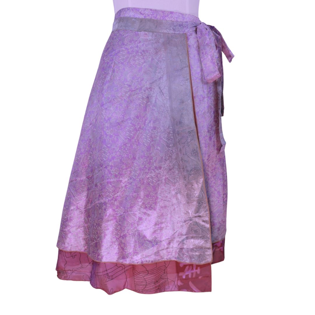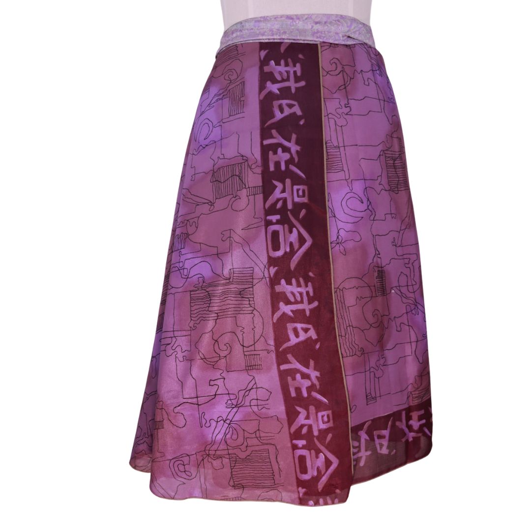 Traditionally Saris are often flamboyant and brightly coloured, frequently embroidered, and made from silk, cotton, or, in recent years, synthetic cloth such as viscose and polyester. We use retro Sari cloth in the majority of our garments so silk is a high component. It is not uncommon to find chiffon or georgette added into the mix which is why we refer to the skirts as a silk blend. We also use 'end of roll' sari fabrics.