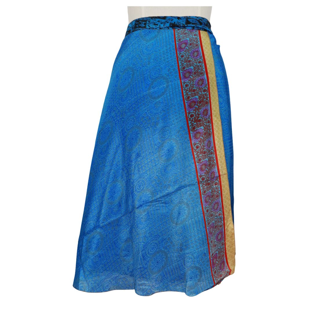 These sari wrap skirts are approximately 81 cms (32") in length so about the calf for many. The waist measures 152 cms (60") to include the wrap aspect plus the ties to fasten.