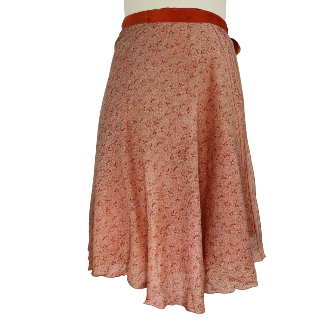 Traditionally Saris are often flamboyant and brightly coloured, frequently embroidered, and made from silk, cotton, or, in recent years, synthetic cloth such as viscose and polyester. We use retro Sari cloth in the majority of our garments so silk is a high component. It is not uncommon to find chiffon or georgette added into the mix which is why we refer to the skirts as a silk blend. We also use 'end of roll' sari fabrics.