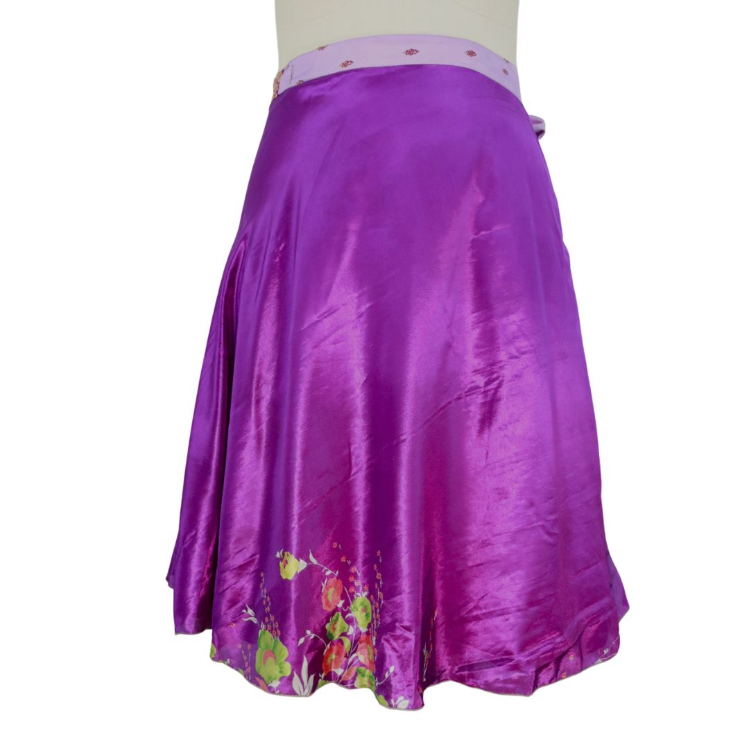 Traditionally Saris are often flamboyant and brightly coloured, frequently embroidered, and made from silk, cotton, or, in recent years, synthetic cloth such as viscose and polyester. We use retro Sari cloth in the majority of our garments so silk is a high component. It is not uncommon to find chiffon or georgette added into the mix which is why we refer to the skirts as a silk blend. We also use 'end of roll' sari fabrics.