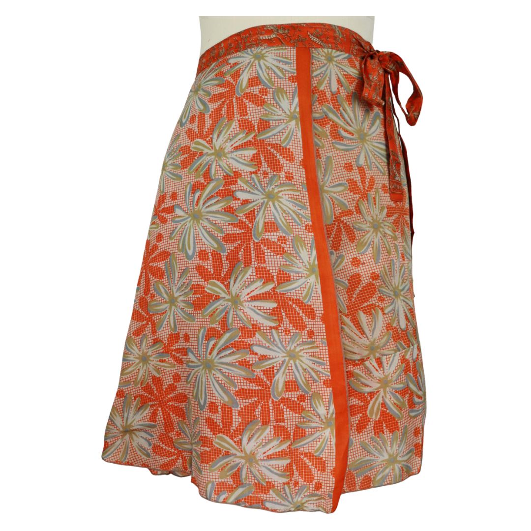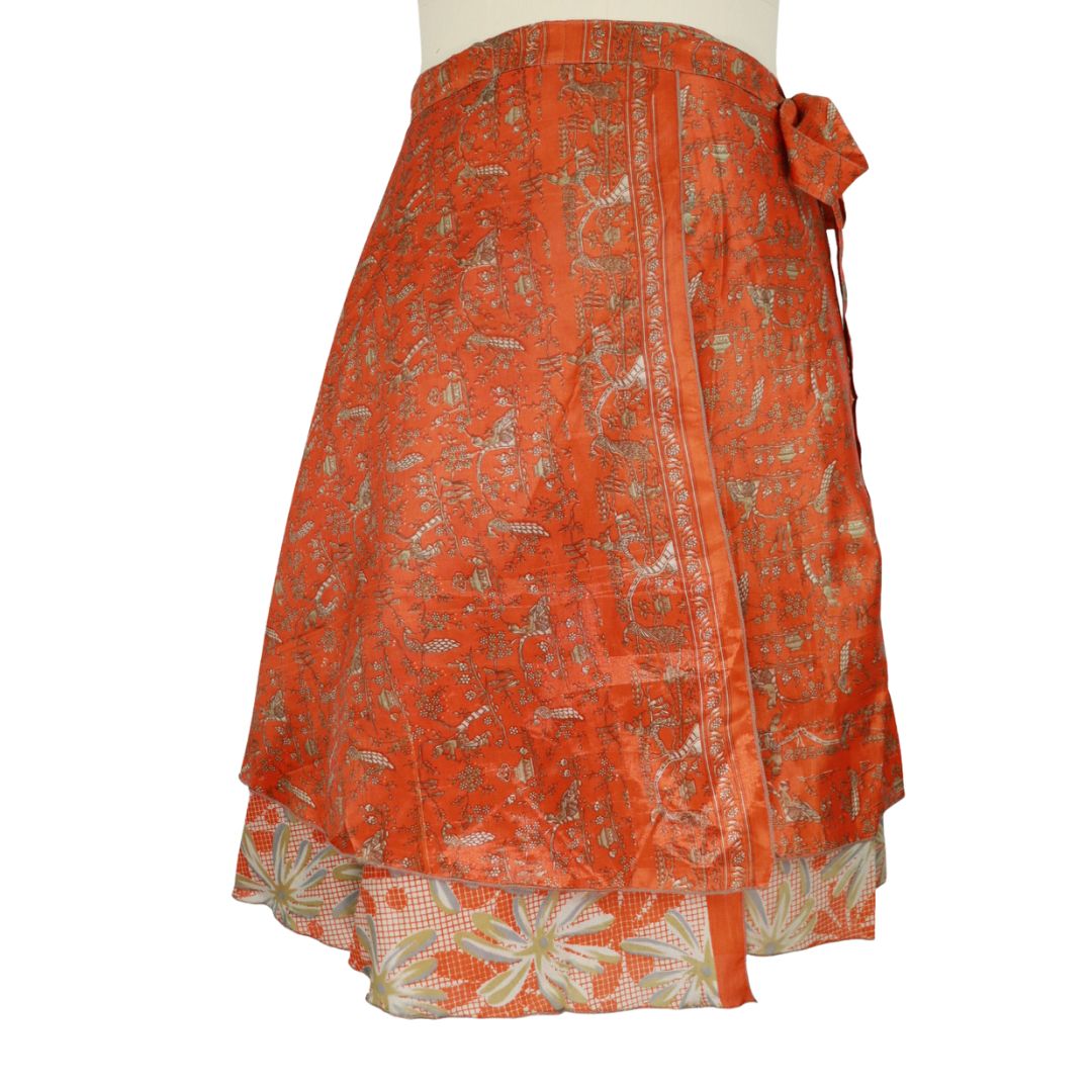 Traditionally Saris are often flamboyant and brightly coloured, frequently embroidered, and made from silk, cotton, or, in recent years, synthetic cloth such as viscose and polyester. We use retro Sari cloth in the majority of our garments so silk is a high component. It is not uncommon to find chiffon or georgette added into the mix which is why we refer to the skirts as a silk blend. We also use 'end of roll' sari fabrics.