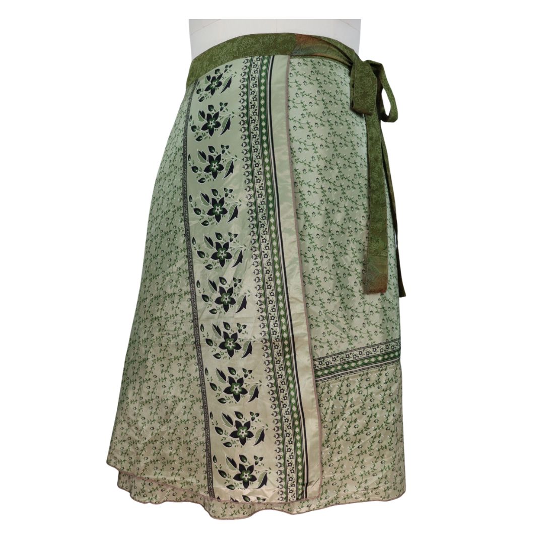Traditionally Saris are often flamboyant and brightly coloured, frequently embroidered, and made from silk, cotton, or, in recent years, synthetic cloth such as viscose and polyester. We use retro Sari cloth in the majority of our garments so silk is a high component. It is not uncommon to find chiffon or georgette added into the mix which is why we refer to the skirts as a silk blend. We also use 'end of roll' sari fabrics.