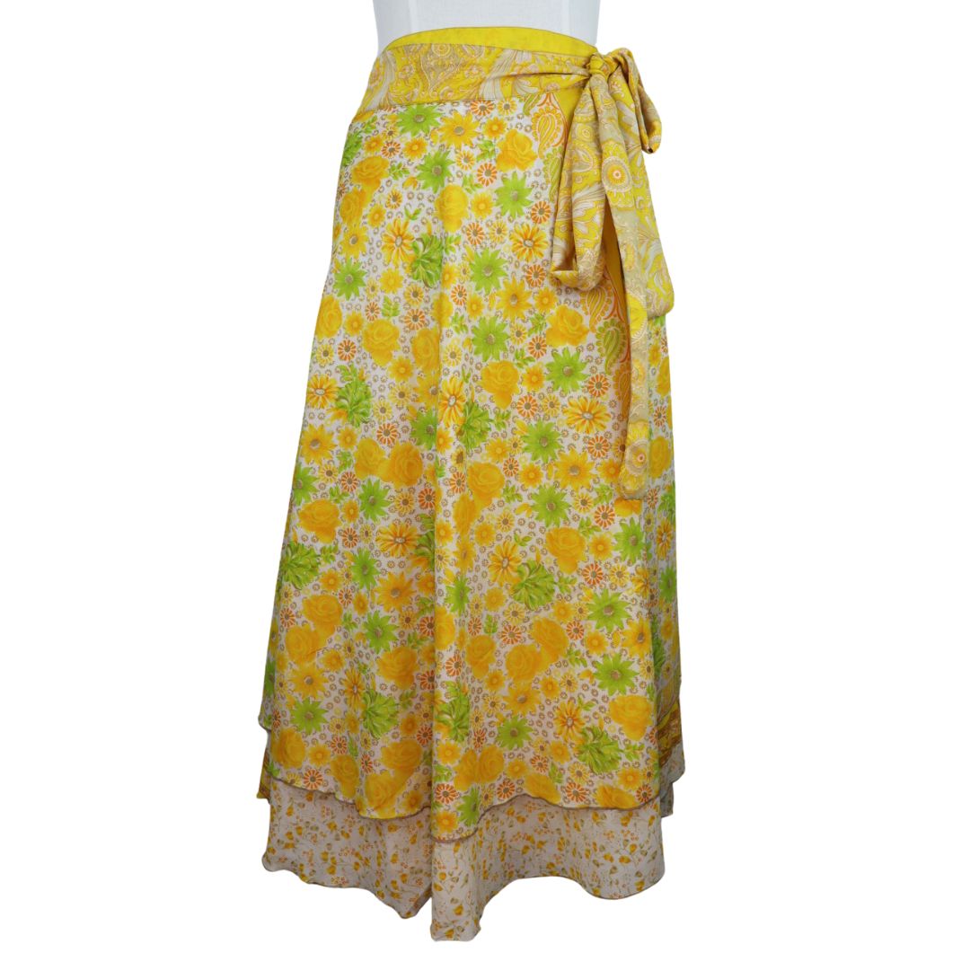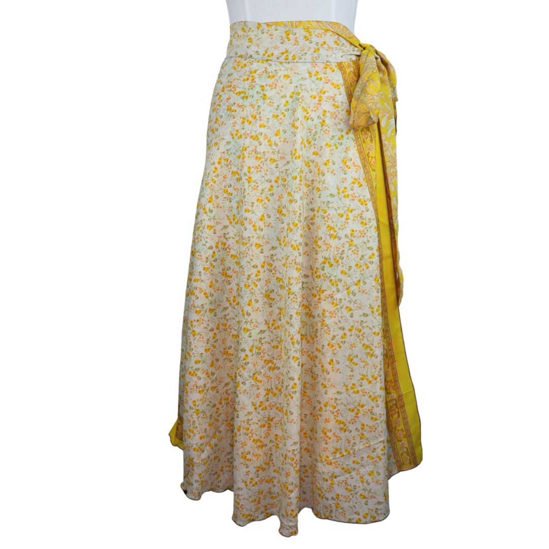 The skirt is extra long and is approximately 102 cms (40") in length so floor length for many. The width measures 177 cms (70") to include the wrap aspect plus the ties to fasten.