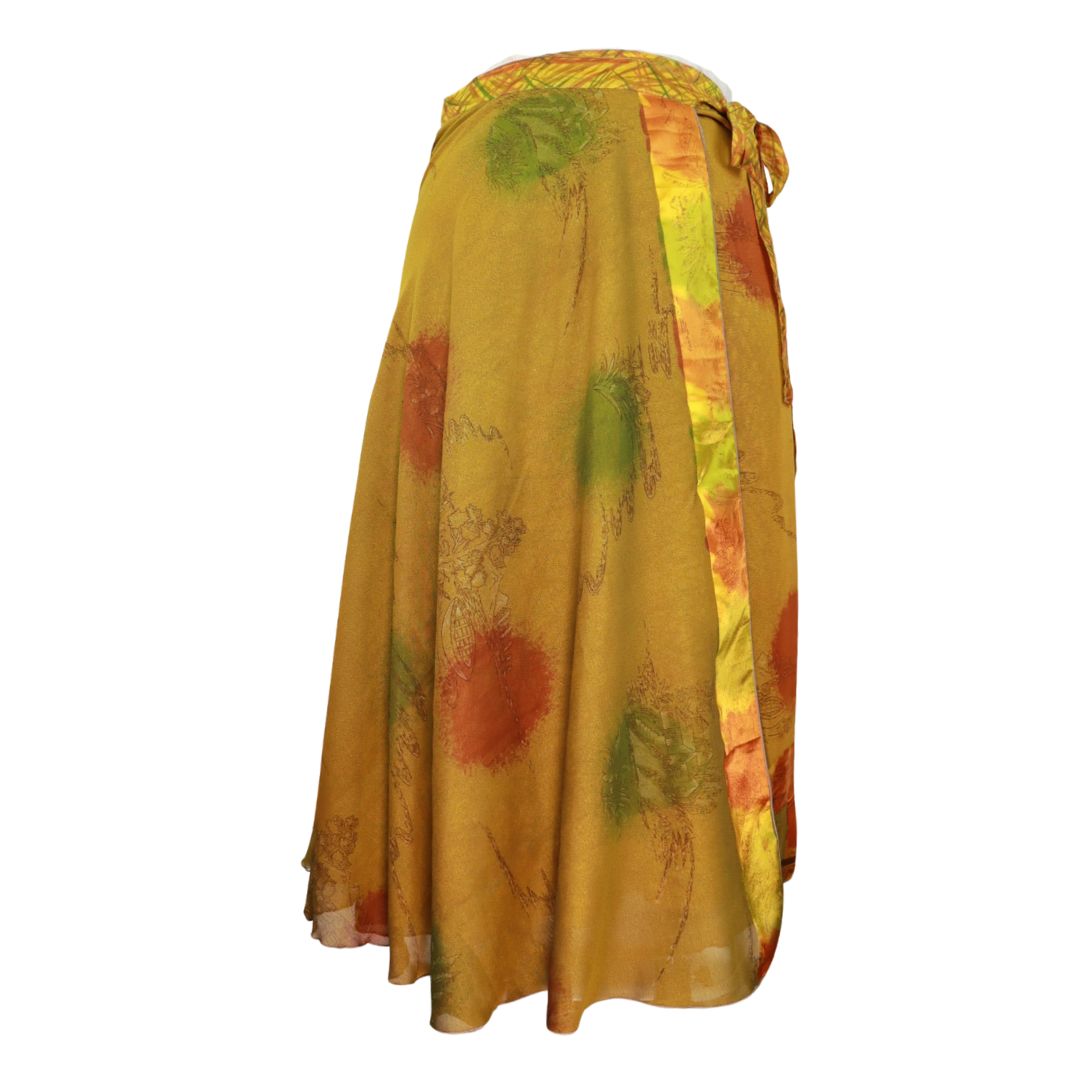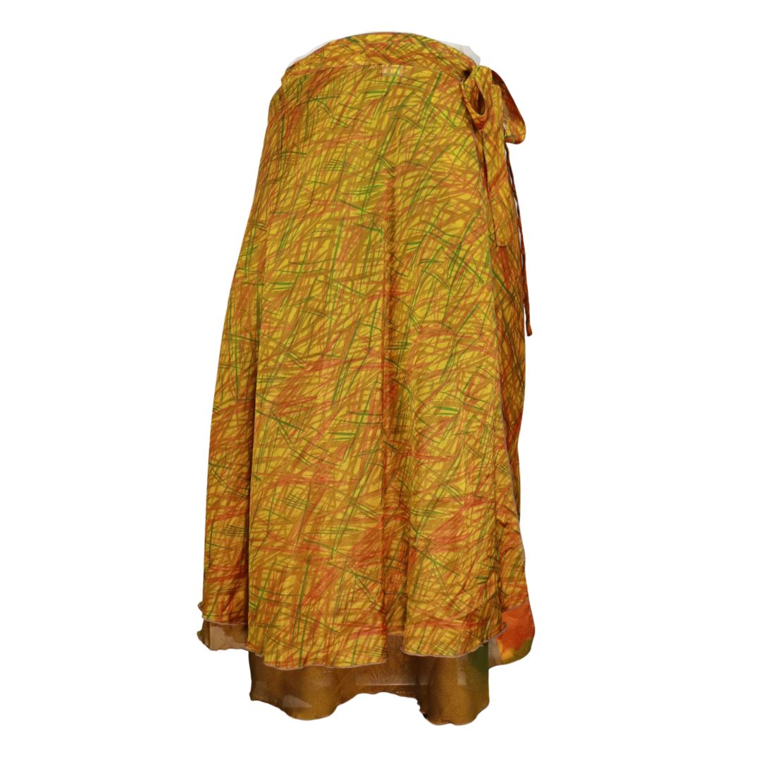 Traditionally Saris are often flamboyant and brightly coloured, frequently embroidered, and made from silk, cotton, or, in recent years, synthetic cloth such as viscose and polyester. We use retro Sari cloth in the majority of our garments so silk is a high component. It is not uncommon to find chiffon or georgette added into the mix which is why we refer to the skirts as a silk blend. We also use 'end of roll' sari fabrics.