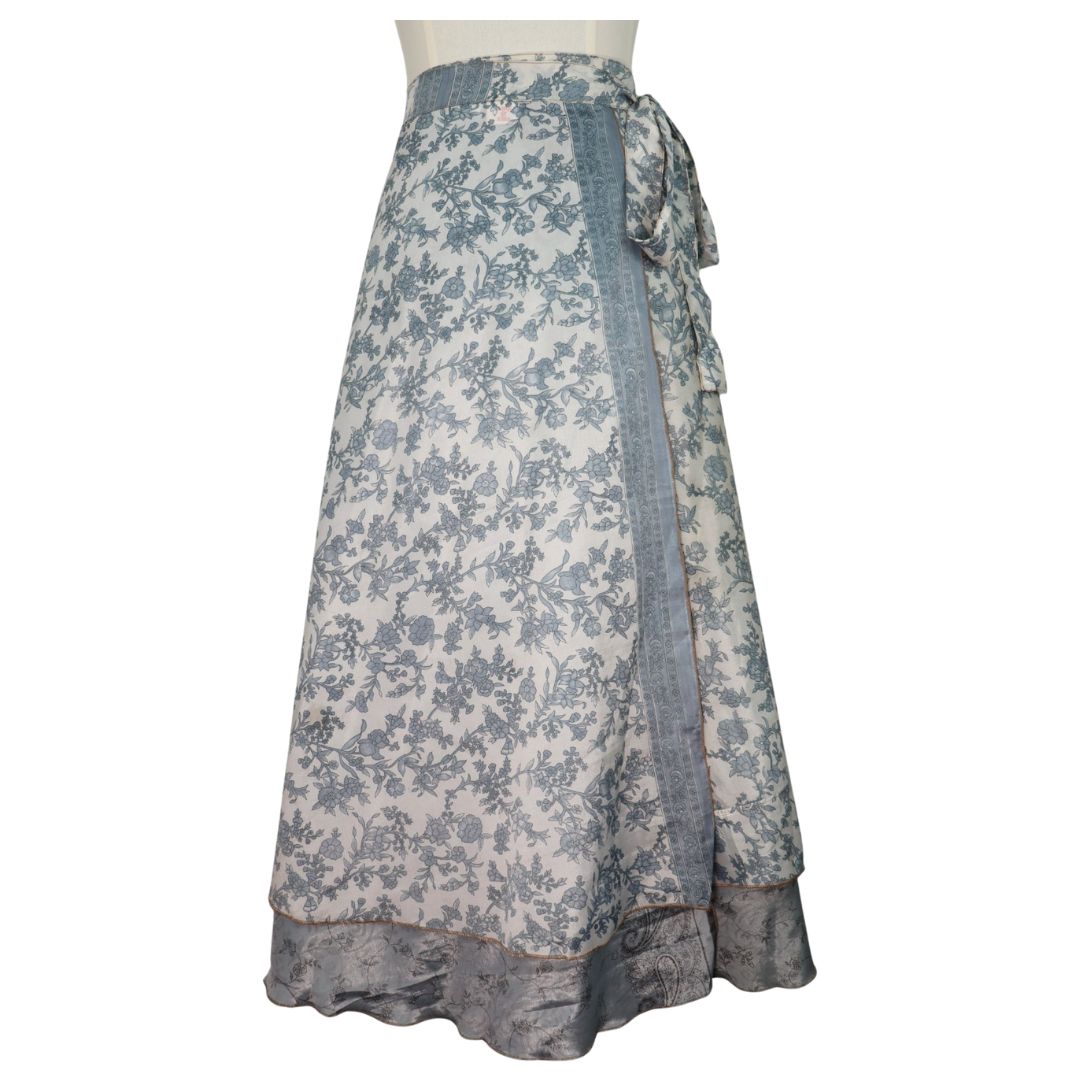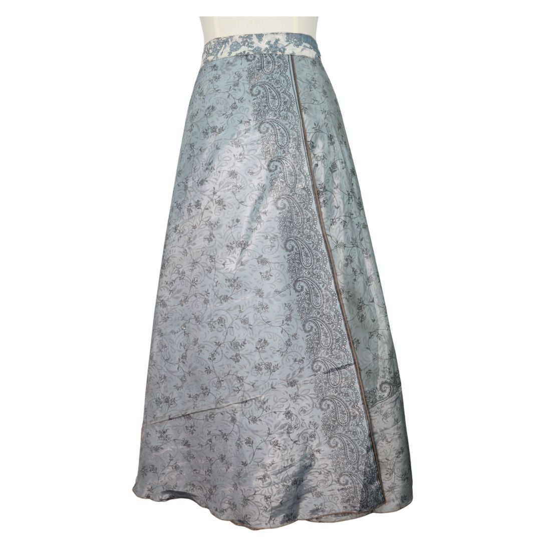 Traditionally Saris are often flamboyant and brightly coloured, frequently embroidered, and made from silk, cotton, or, in recent years, synthetic cloth such as viscose and polyester. We use retro Sari cloth in the majority of our garments so silk is a high component. It is not uncommon to find chiffon or georgette added into the mix which is why we refer to the skirts as a silk blend. We also use 'end of roll' sari fabrics.