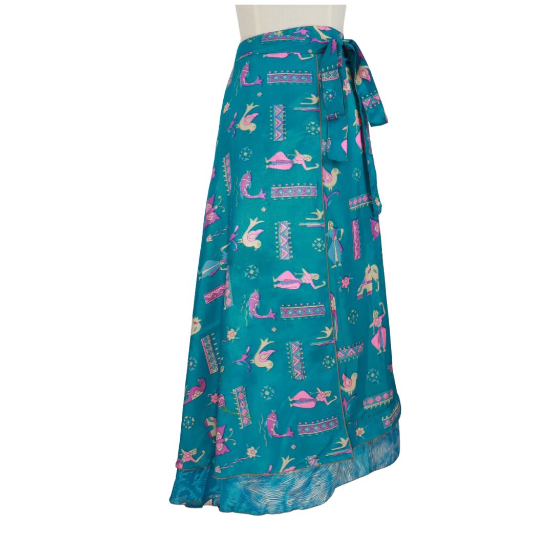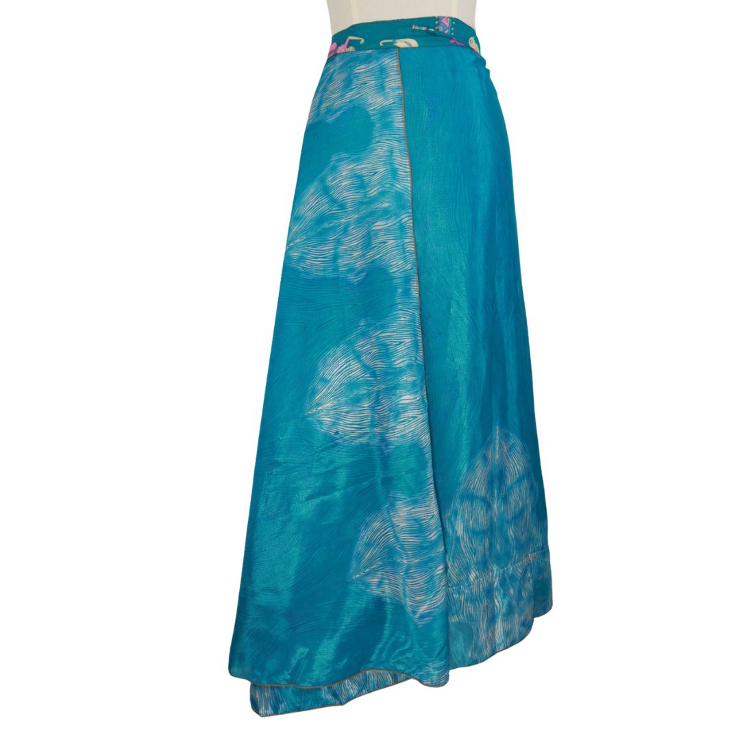 Traditionally Saris are often flamboyant and brightly coloured, frequently embroidered, and made from silk, cotton, or, in recent years, synthetic cloth such as viscose and polyester. We use retro Sari cloth in the majority of our garments so silk is a high component. It is not uncommon to find chiffon or georgette added into the mix which is why we refer to the skirts as a silk blend. We also use 'end of roll' sari fabrics.