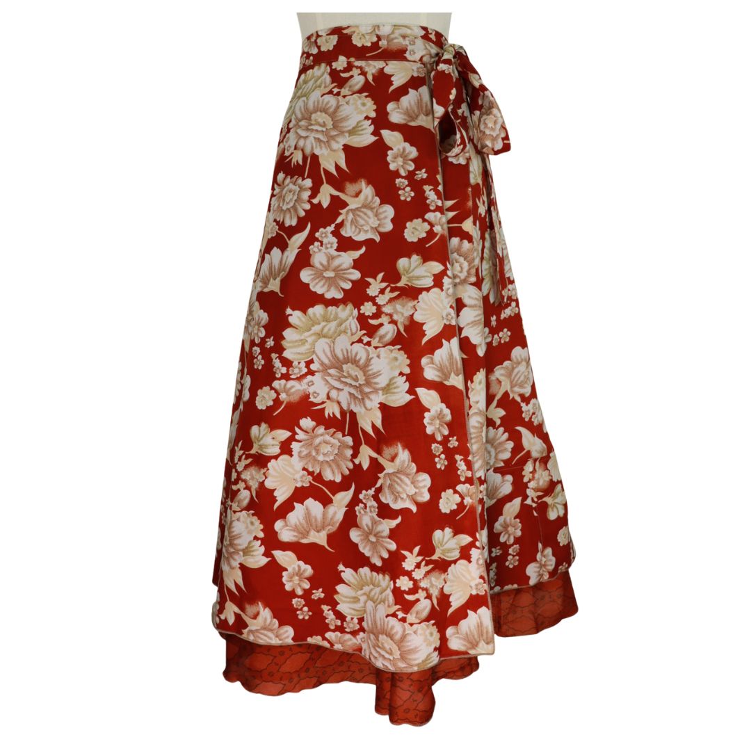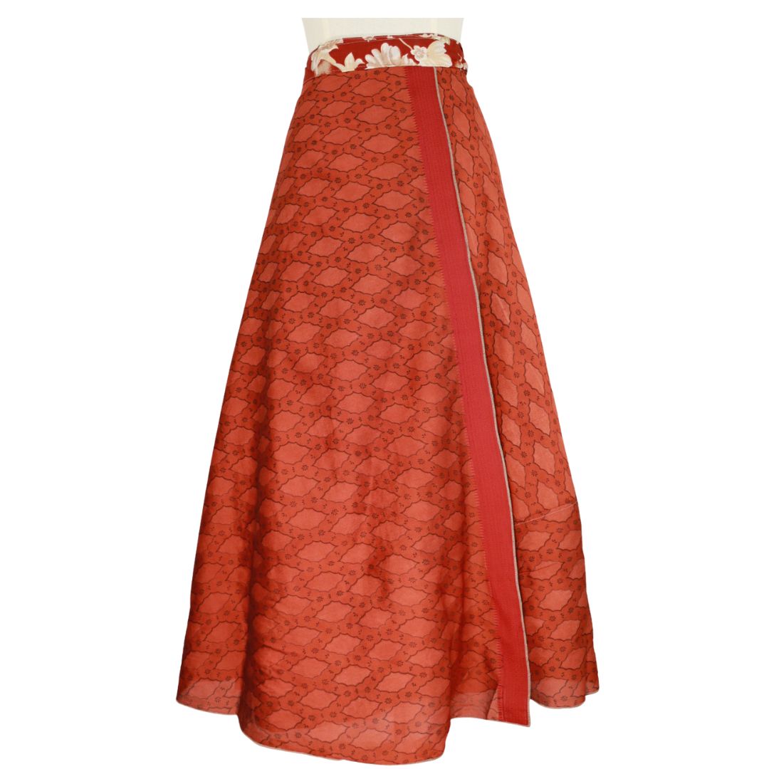 Traditionally Saris are often flamboyant and brightly coloured, frequently embroidered, and made from silk, cotton, or, in recent years, synthetic cloth such as viscose and polyester. We use retro Sari cloth in the majority of our garments so silk is a high component. It is not uncommon to find chiffon or georgette added into the mix which is why we refer to the skirts as a silk blend. We also use 'end of roll' sari fabrics.