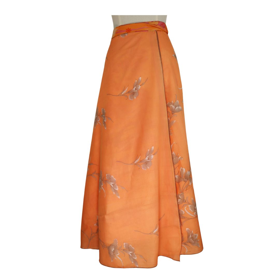 This skirt is extra long and is approximately 102 cms (40") in length so floor length for many. The width measures 122 cms (48") to include the wrap aspect plus the ties to fasten.