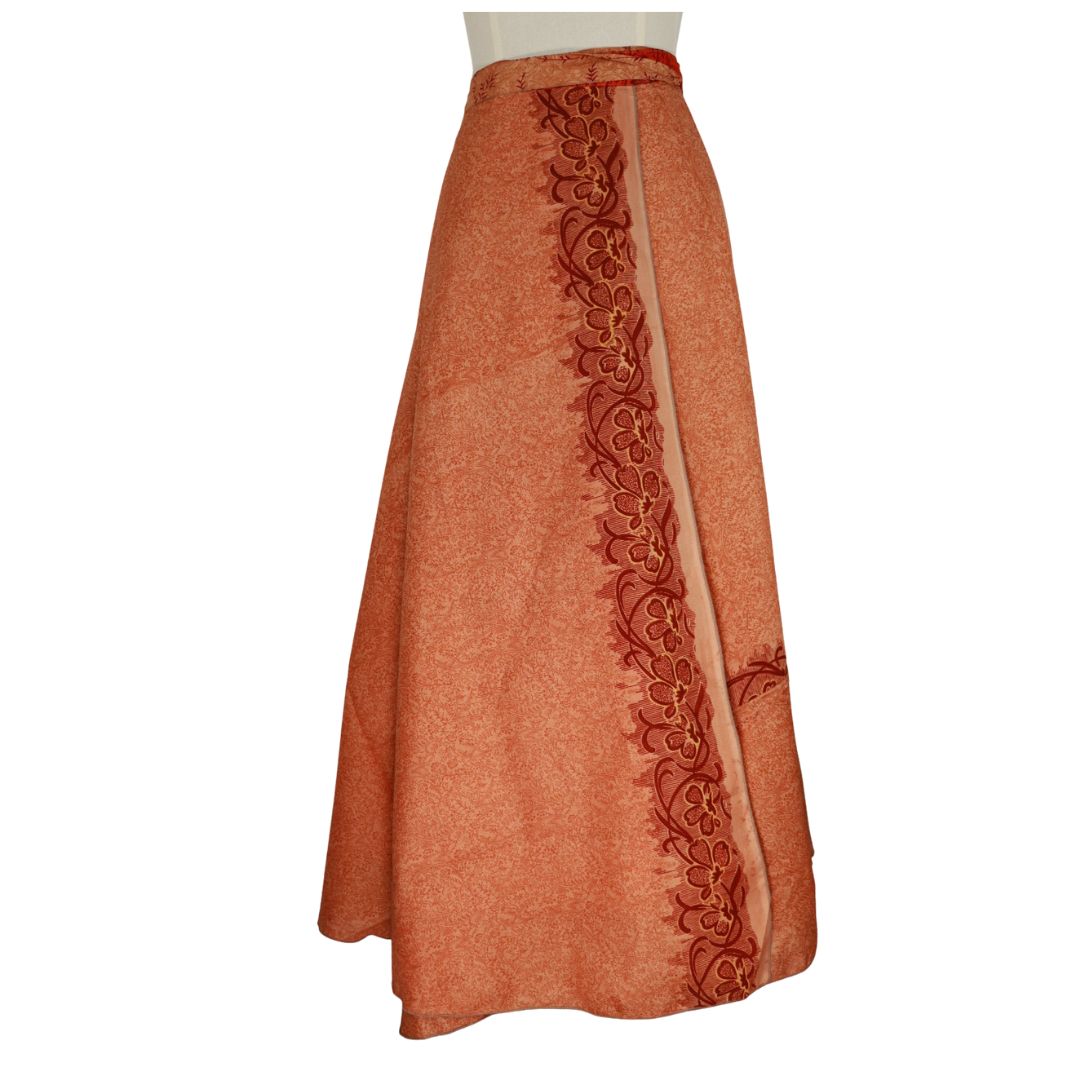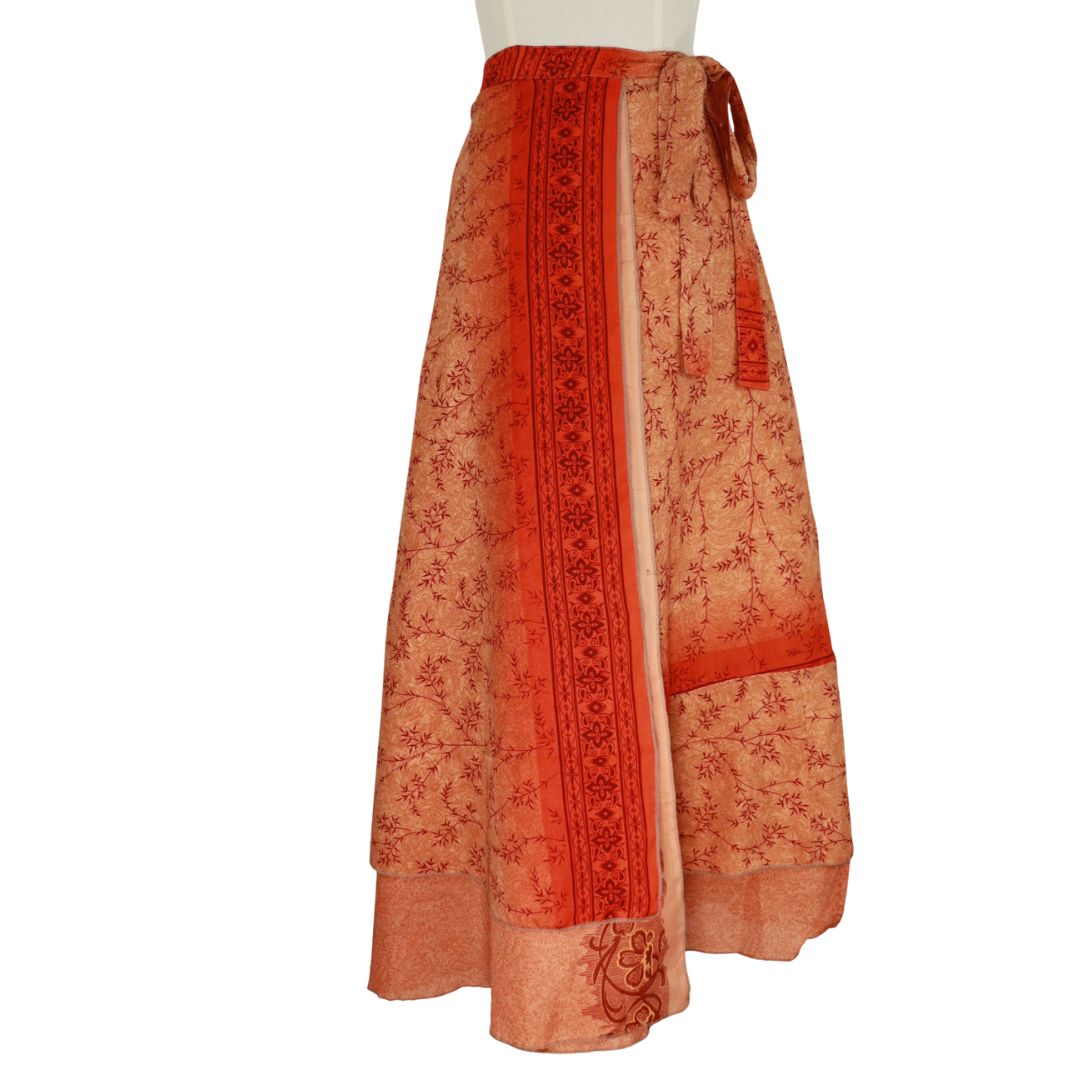 Traditionally Saris are often flamboyant and brightly coloured, frequently embroidered, and made from silk, cotton, or, in recent years, synthetic cloth such as viscose and polyester. We use retro Sari cloth in the majority of our garments so silk is a high component. It is not uncommon to find chiffon or georgette added into the mix which is why we refer to the skirts as a silk blend. We also use 'end of roll' sari fabrics.