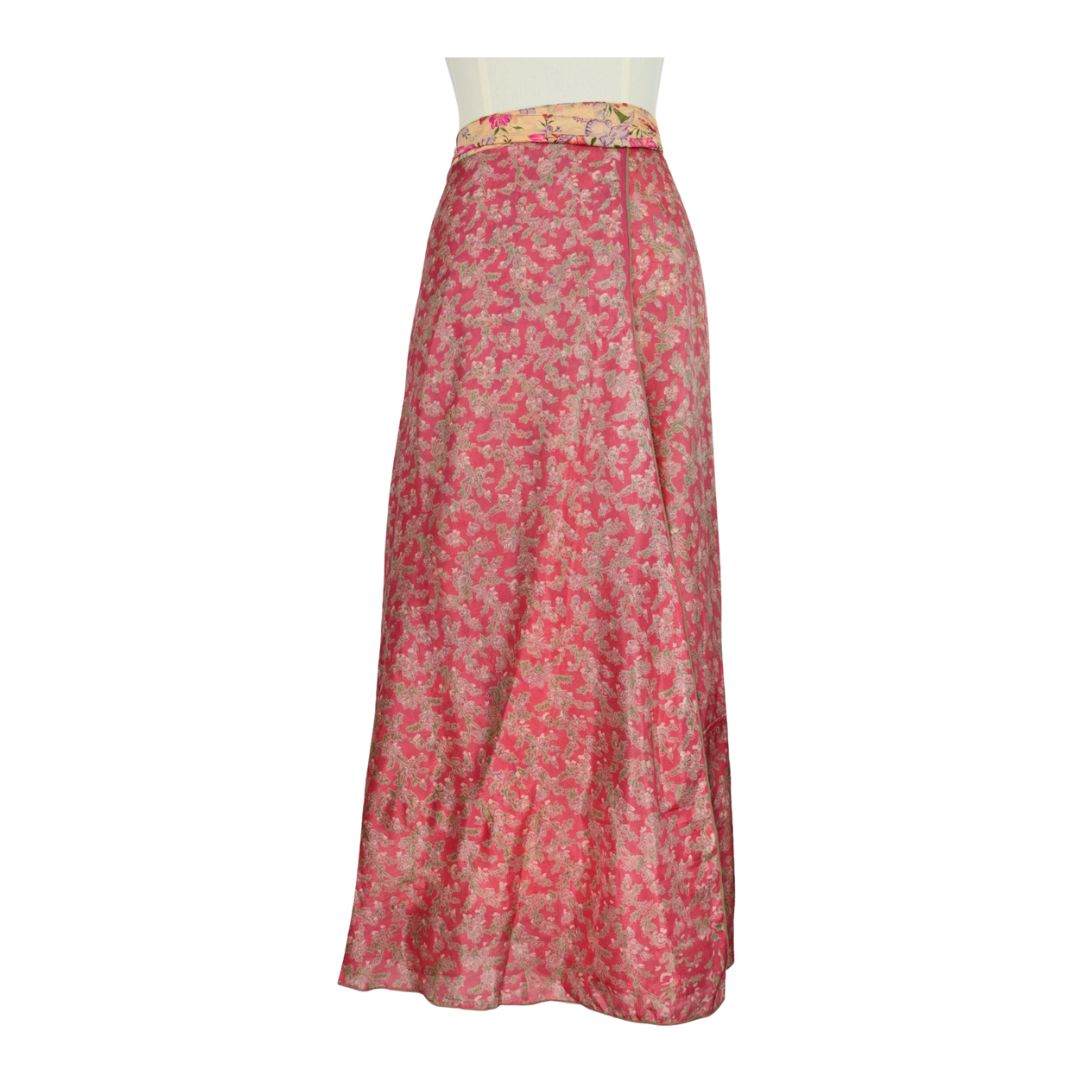 Traditionally Saris are often flamboyant and brightly coloured, frequently embroidered, and made from silk, cotton, or, in recent years, synthetic cloth such as viscose and polyester. We use retro Sari cloth in the majority of our garments so silk is a high component. It is not uncommon to find chiffon or georgette added into the mix which is why we refer to the skirts as a silk blend. We also use 'end of roll' sari fabrics.