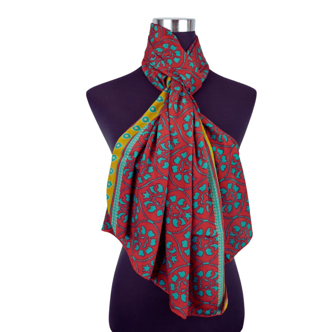 Lovely large scarf that can also be worn as a wrap. The colours again are stunning and the silk fabric has a lovely sheen to it. Perfect accessory to brighten up any outfit. Fast delivery and excellent service as always. Thanks.