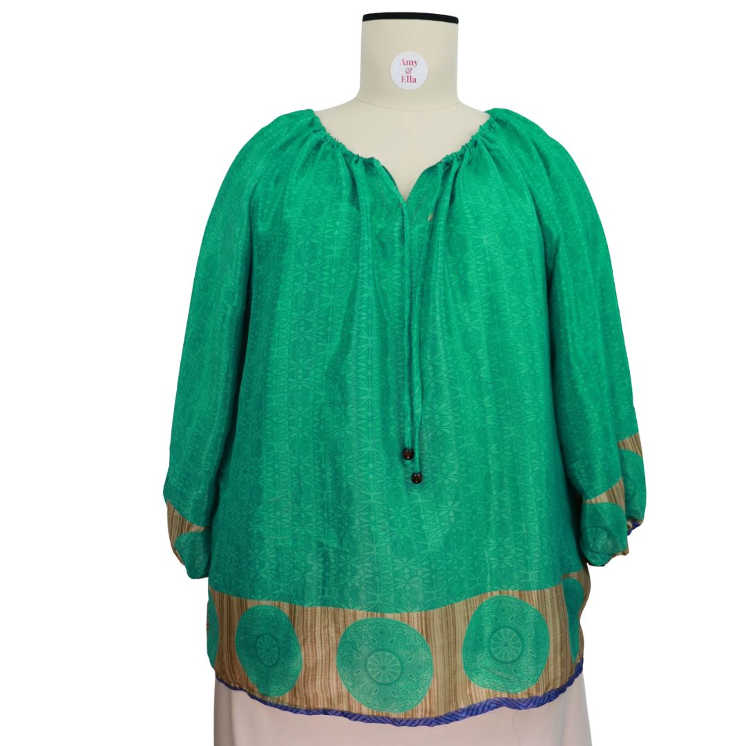 Traditionally Saris are often flamboyant and brightly coloured, frequently embroidered, and made from silk, cotton, or, in recent years, synthetic cloth such as viscose and polyester. We use retro Sari cloth in the majority of our garments so silk is a high component. It is not uncommon to find chiffon or georgette added into the mix which is why we refer to the skirts as a silk blend. We also use 'end of roll' sari fabrics.