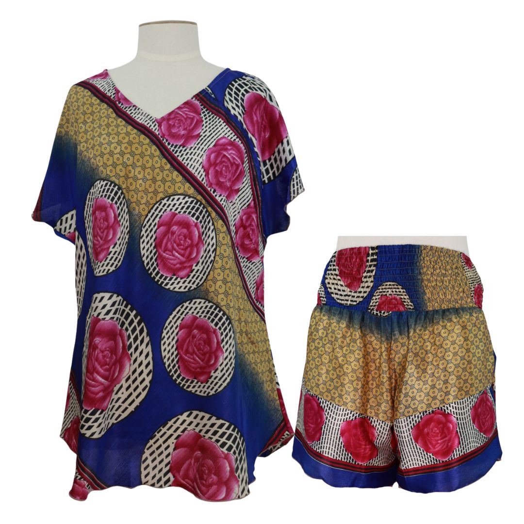 A beautiful set suitable for either sleepwear or lounge wear. Plus, since both pieces are made from the same sari fabrics we use for shorts and blouses, you can also wear the top and shorts separately. The top is very similar to our current short sleeve blouse.