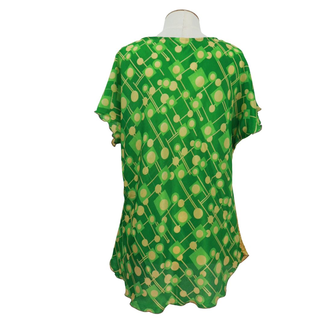 A beautiful set suitable for either sleepwear or lounge wear. Plus, since both pieces are made from the same sari fabrics we use for shorts and blouses, you can also wear the top and shorts separately. The top is very similar to our current short sleeve blouse.