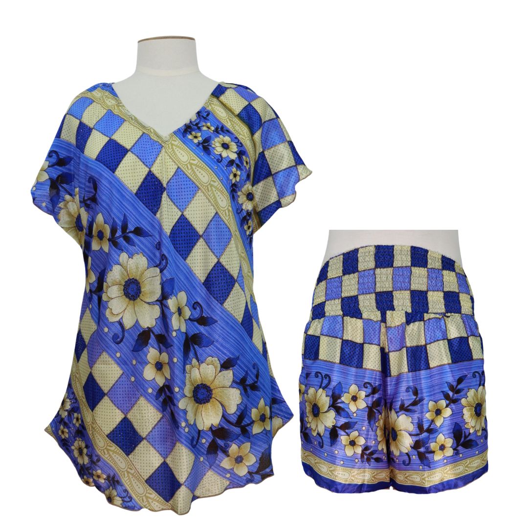 A beautiful set suitable for either sleepwear or lounge wear. Plus, since both pieces are made from the same sari fabrics we use for shorts and blouses, you can also wear the top and shorts separately. The top is very similar to our current short sleeve blouse.