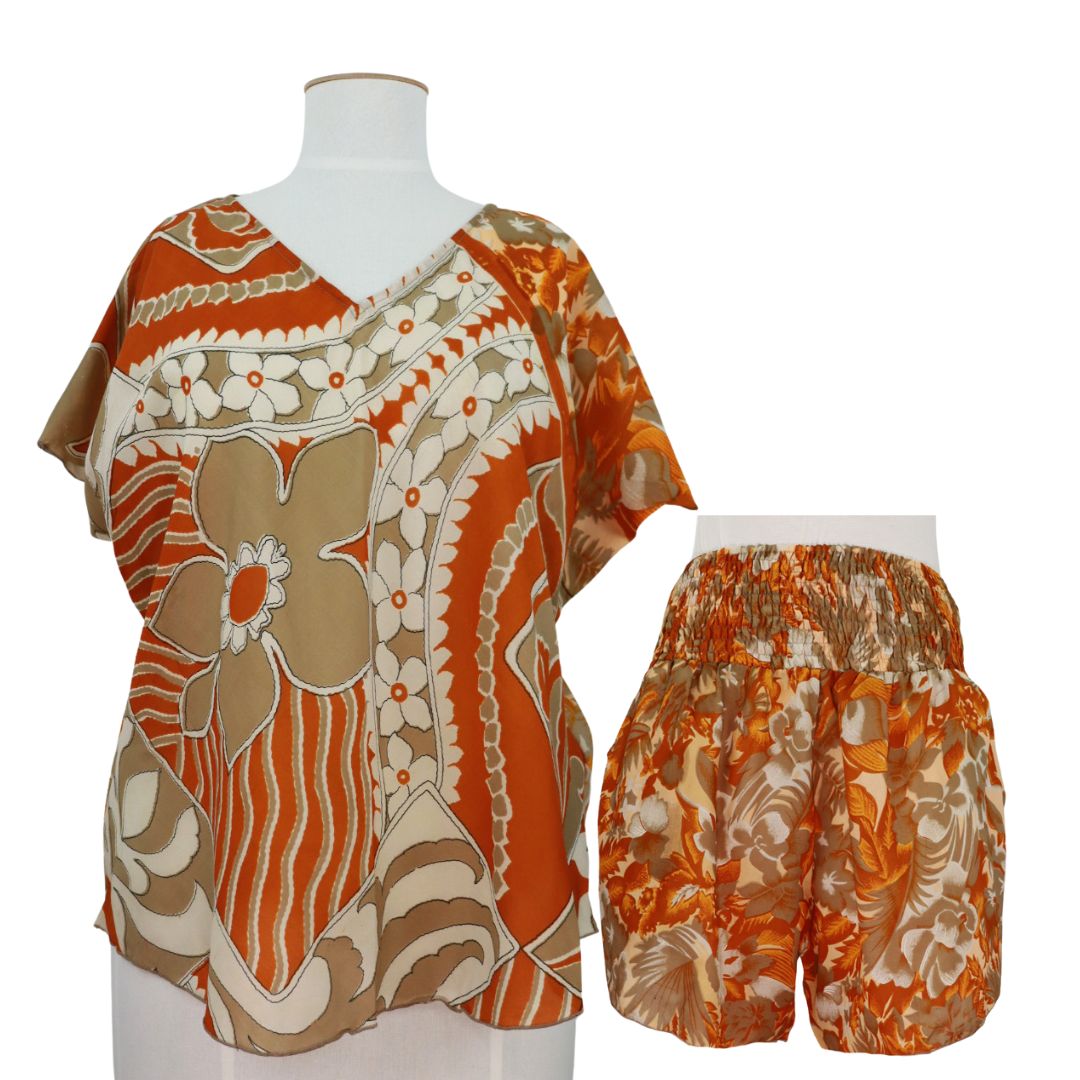 A beautiful set suitable for either sleepwear or lounge wear. Plus, since both pieces are made from the same sari fabrics we use for shorts and blouses, you can also wear the top and shorts separately. The top is very similar to our current short sleeve blouse.