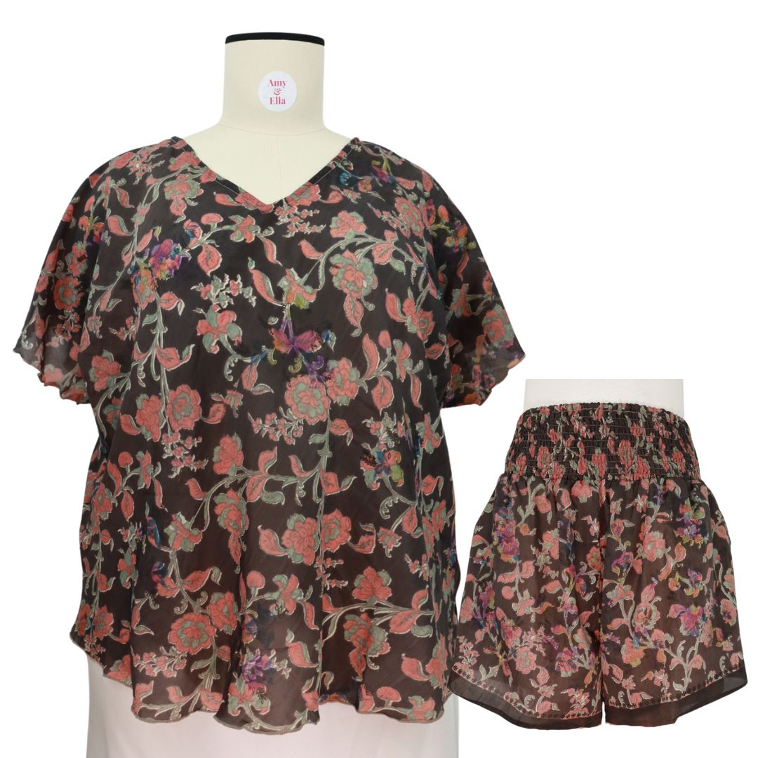 A beautiful set suitable for either sleepwear or lounge wear. Plus, since both pieces are made from the same sari fabrics we use for shorts and blouses, you can also wear the top and shorts separately. The top is very similar to our current short sleeve blouse.
