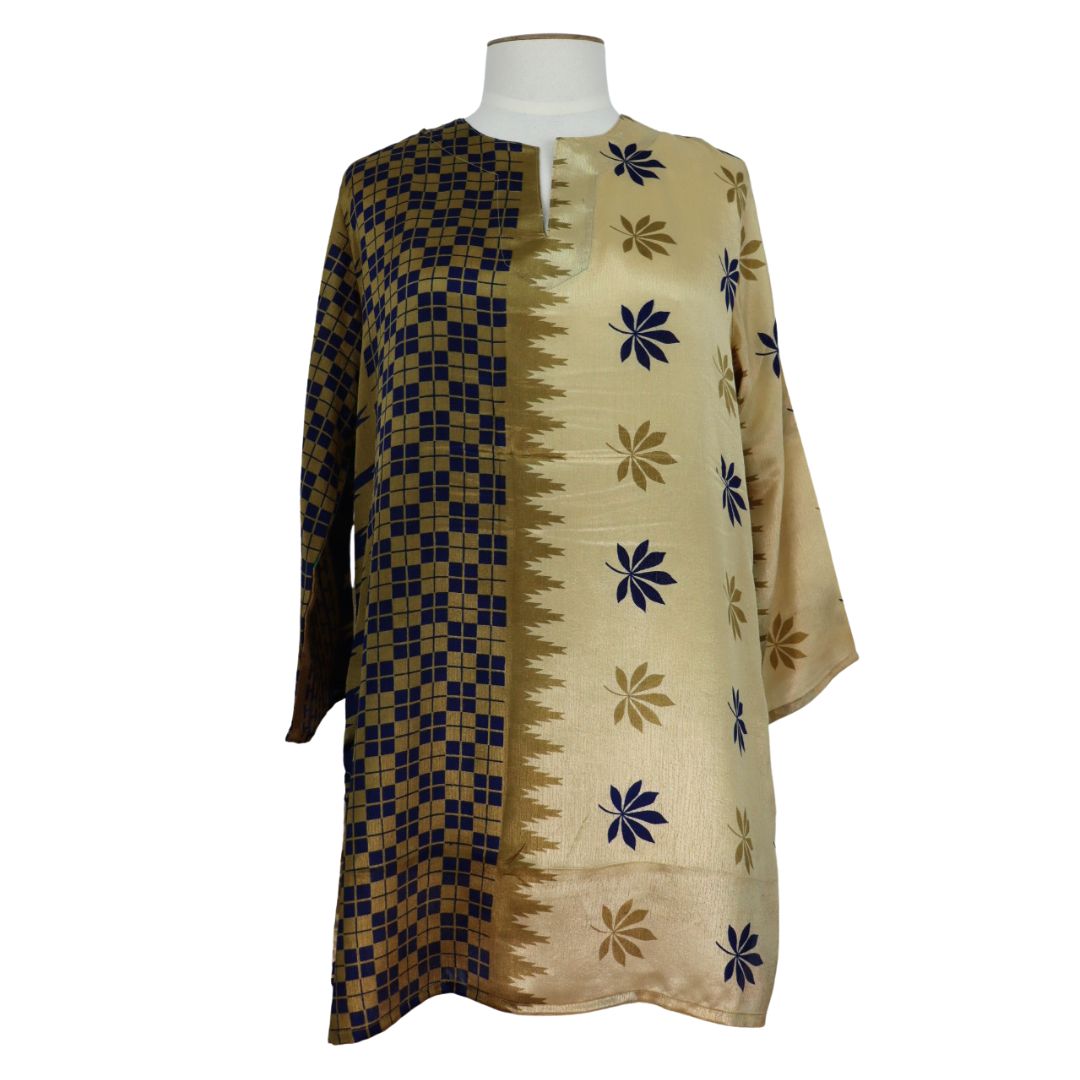 You'll receive this tunic. Since each one is lovingly hand made from an up-cycled silk blend sari, you may find tiny imperfections in the fabric.