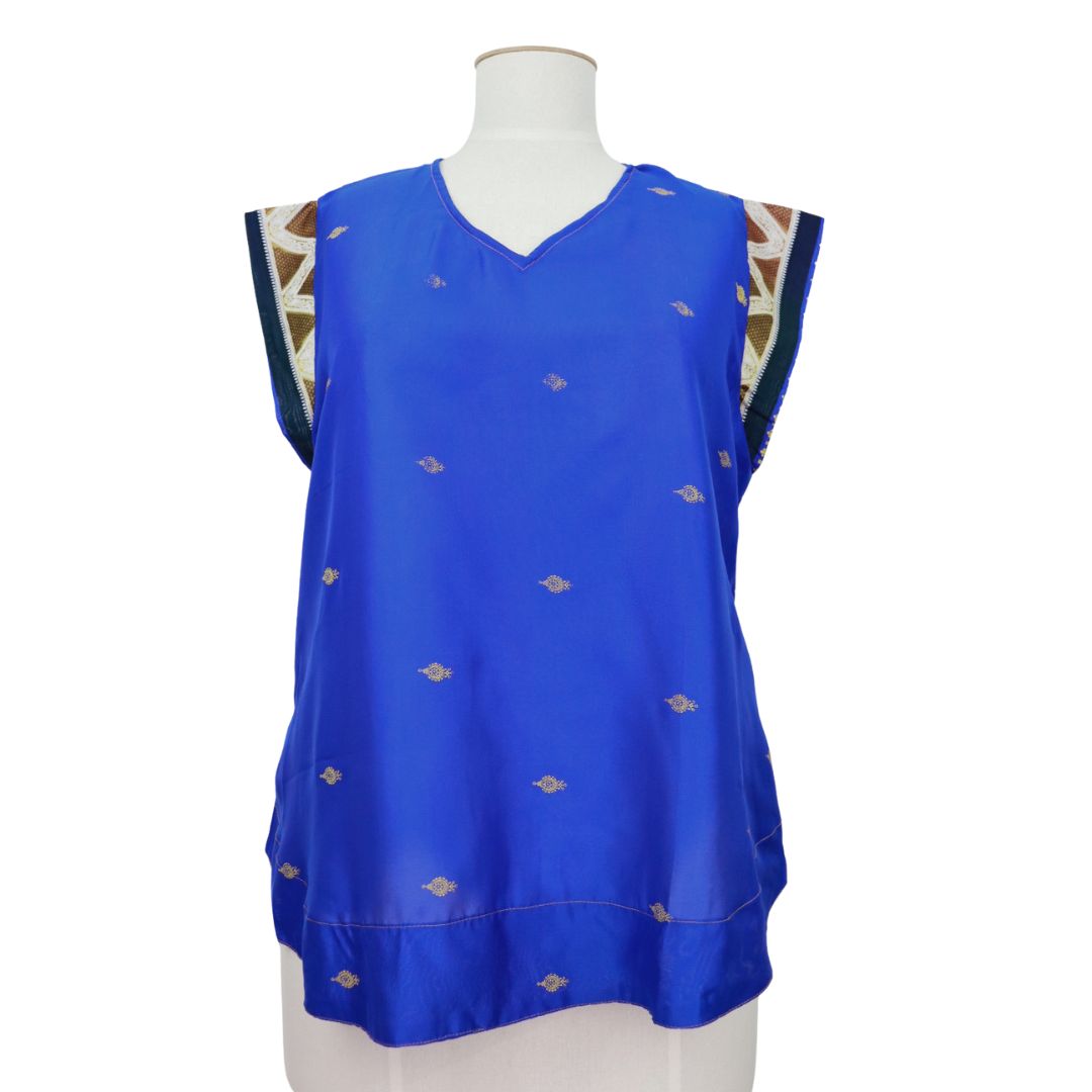 Traditionally Saris are often flamboyant and brightly coloured, frequently embroidered, and made from silk, cotton, or, in recent years, synthetic cloth such as viscose and polyester. We use retro Sari cloth in the majority of our garments so silk is a high component. It is not uncommon to find chiffon or georgette added into the mix which is why we refer to the skirts as a silk blend. We also use 'end of roll' sari fabrics.