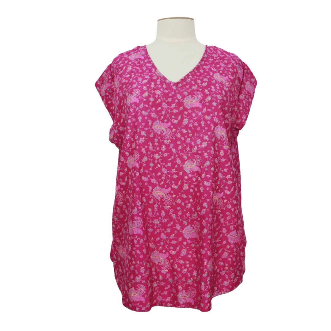 With a flattering V neck, capped sleeves and rounded hem edges, this longer style top is another wardrobe staple. The rear hangs down a little lower than the front and may cover your bottom.
