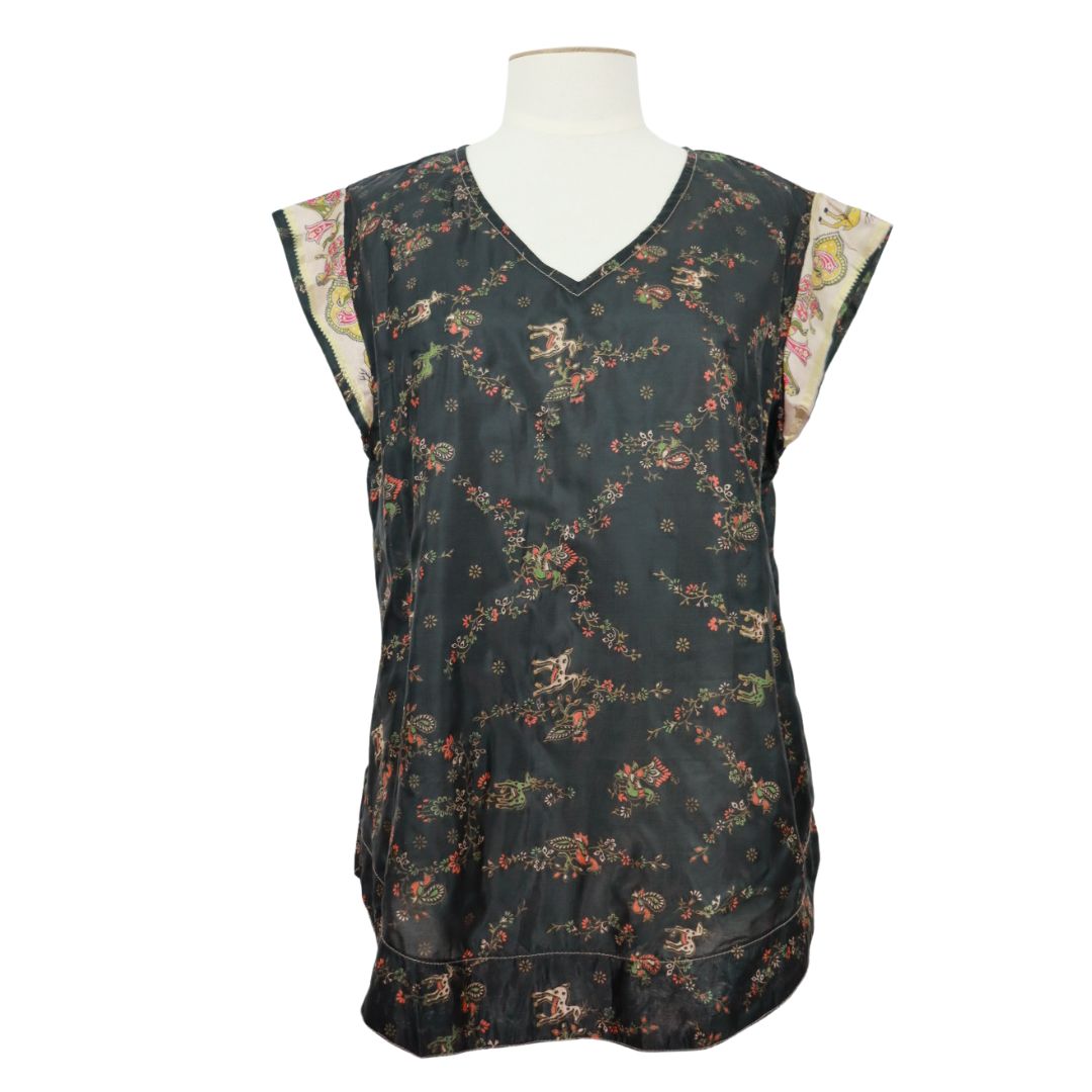 Since we cannot trace back the origin of each Sari we upcycle and each garment is unique (preventing batch testing), it’s impossible to say for sure what the actual fabric content is.