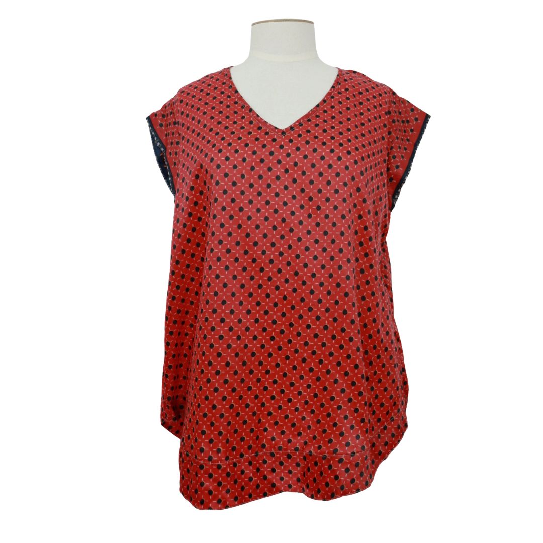 Batwing tops are very generous across the chest. As they sit on the waist at the front, again stick to your normal size. If you cross the size range, go bigger so the waist fits you still.