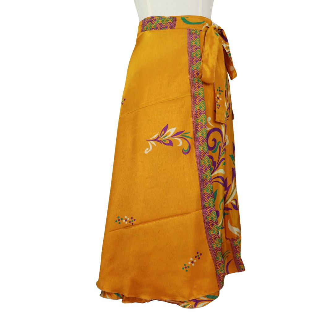 Traditionally Saris are often flamboyant and brightly coloured, frequently embroidered, and made from silk, cotton, or, in recent years, synthetic cloth such as viscose and polyester. We use retro Sari cloth in the majority of our garments so silk is a high component. It is not uncommon to find chiffon or georgette added into the mix which is why we refer to the skirts as a silk blend. We also use 'end of roll' sari fabrics.