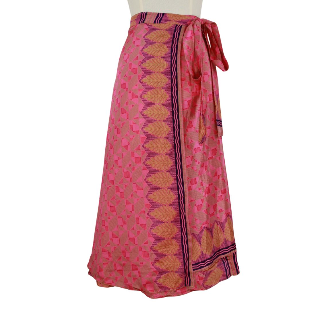 Traditionally Saris are often flamboyant and brightly coloured, frequently embroidered, and made from silk, cotton, or, in recent years, synthetic cloth such as viscose and polyester. We use retro Sari cloth in the majority of our garments so silk is a high component. It is not uncommon to find chiffon or georgette added into the mix which is why we refer to the skirts as a silk blend. We also use 'end of roll' sari fabrics.