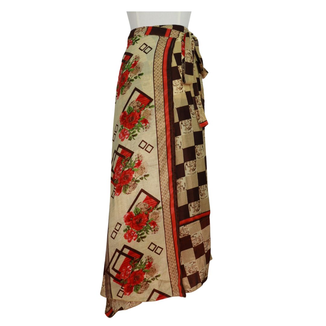 Traditionally Saris are often flamboyant and brightly coloured, frequently embroidered, and made from silk, cotton, or, in recent years, synthetic cloth such as viscose and polyester. We use retro Sari cloth in the majority of our garments so silk is a high component. It is not uncommon to find chiffon or georgette added into the mix which is why we refer to the skirts as a silk blend. We also use 'end of roll' sari fabrics.