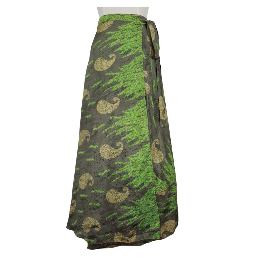 Traditionally Saris are often flamboyant and brightly coloured, frequently embroidered, and made from silk, cotton, or, in recent years, synthetic cloth such as viscose and polyester. We use retro Sari cloth in the majority of our garments so silk is a high component. It is not uncommon to find chiffon or georgette added into the mix which is why we refer to the skirts as a silk blend. We also use 'end of roll' sari fabrics.