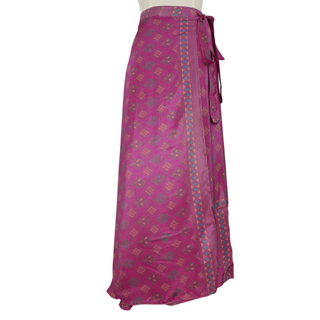 Traditionally Saris are often flamboyant and brightly coloured, frequently embroidered, and made from silk, cotton, or, in recent years, synthetic cloth such as viscose and polyester. We use retro Sari cloth in the majority of our garments so silk is a high component. It is not uncommon to find chiffon or georgette added into the mix which is why we refer to the skirts as a silk blend. We also use 'end of roll' sari fabrics.
