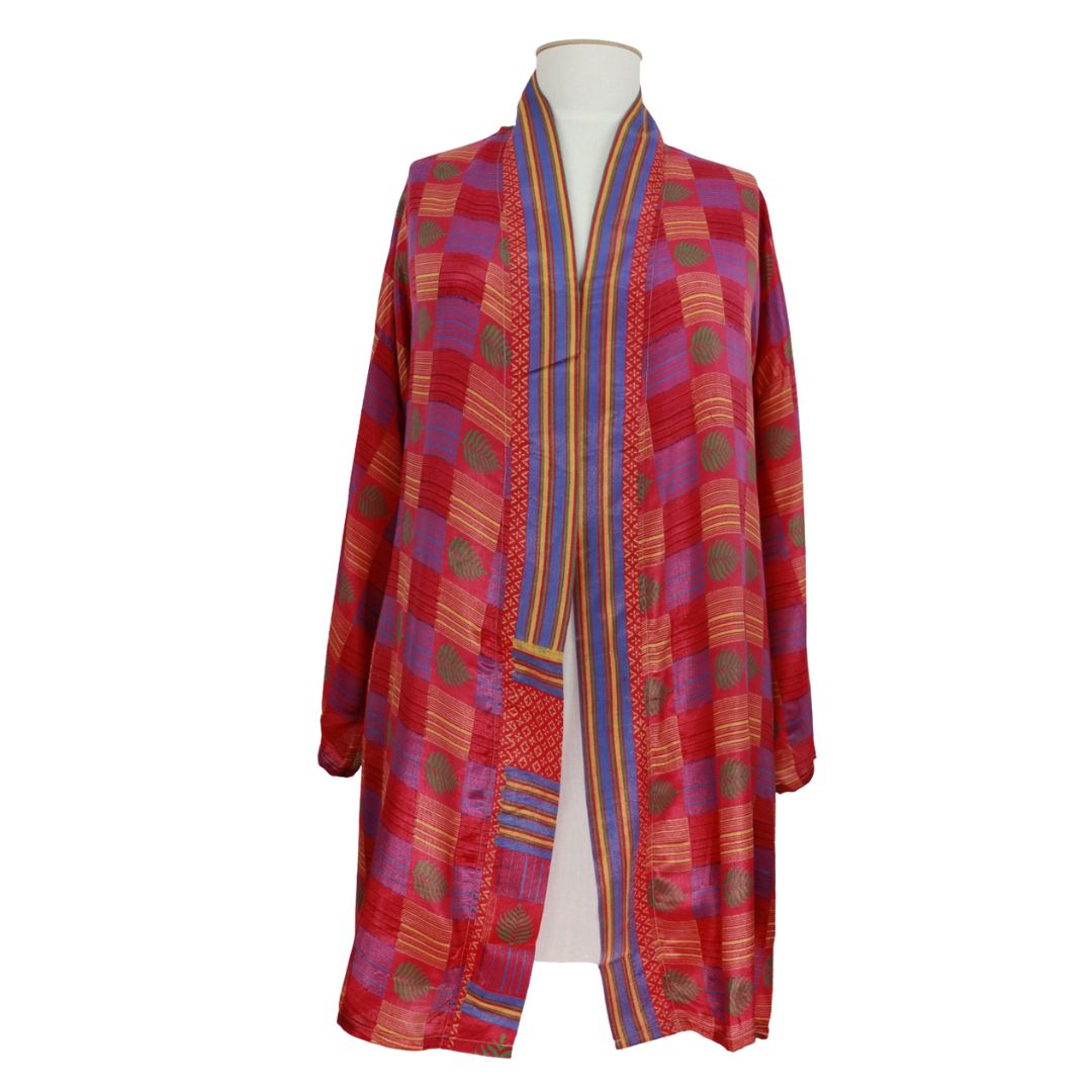 Since we cannot trace back the origin of each Sari we upcycle and each garment is unique (preventing batch testing), it’s impossible to say for sure what the actual fabric content is.